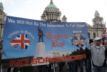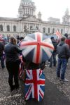 - Loyalist protesters march outside Belfast City Hall (itv.com)