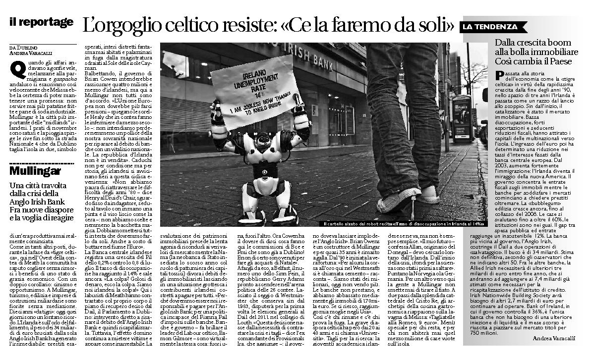 L’ORGOGLIO CELTICO RESISTE: “CE LA FAREMO DA SOLI” Posted on 20 Nov 2010 by S.P. Lascia un commento Reportage pubblicato il 19 novembre 2010 dal quotidiano Avvenire, a proposito della gravissima crisi economica che sta portando a picco la Repubblica di Irlanda di Andrea Varacalli (Cliccare l’immagine per ingrandirla) Fai clic per condividere su Facebook (Si apre in una nuova finestra) Facebook Fai clic per condividere su X (Si apre in una nuova finestra) X Fai clic per inviare un link a un amico via e-mail (Si apre in una nuova finestra) E-mail Fai clic qui per stampare (Si apre in una nuova finestra) Stampa Altro Fai clic per condividere su WhatsApp (Si apre in una nuova finestra) WhatsApp Fai clic qui per condividere su LinkedIn (Si apre in una nuova finestra) LinkedIn Fai clic qui per condividere su Reddit (Si apre in una nuova finestra) Reddit Mi piace Caricamento... Correlati tagged with andrea varacalli, avvenire, crisi economica irlandese, ireland, irlanda, repubblica di irlanda Carta Stampata irlanda News