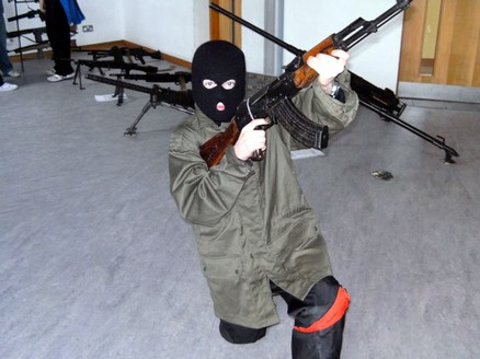 They were wearing balaclavas, combat jackets and trousers, dark glasses and berets, and brandishing replica weapons including AK47s and Armalites.