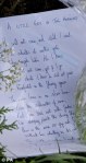 A poem is laid amongst flowers is seen outside the home of Police constable Ronan Kerr