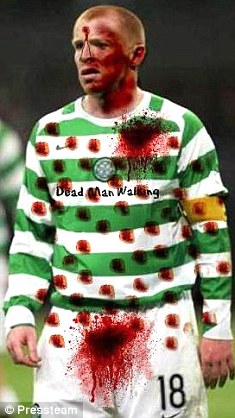 This mock-up on Facebook of Neil Lennon in a blood-soaked football strip has emerged in the wake of bombs being sent to the Celtic manager and two supporters of the club.