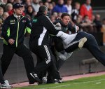 Un tifoso saltato giù dal settore dell’Hearts, ha corso lungo la linea laterale del campo da gioco e si è gettato su Neil Lennon, allenatore del Celtic. Solo un grande spavento, grazie all’intervento della sicurezza che ha gettato a terra e ammanettato il giovane prima che la situazione degenerasse. Lennon è apparso stordito, ma illeso.