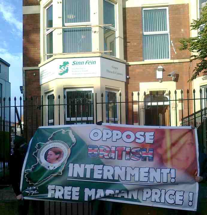 OPPOSE BRITISH INTERNMENT! FREE MARIAN PRICE Posted on 25 Mag 2011 by S.P. Lascia un commento Banner in supporto delle liberazione di Marian Price, presso l’ufficio Sinn Fein di Gerry Kelly (Cliccare l’immagine per ingrandire) Fai clic per condividere su Facebook (Si apre in una nuova finestra) Facebook Fai clic per condividere su X (Si apre in una nuova finestra) X Fai clic per inviare un link a un amico via e-mail (Si apre in una nuova finestra) E-mail Fai clic qui per stampare (Si apre in una nuova finestra) Stampa Altro Fai clic per condividere su WhatsApp (Si apre in una nuova finestra) WhatsApp Fai clic qui per condividere su LinkedIn (Si apre in una nuova finestra) LinkedIn Fai clic qui per condividere su Reddit (Si apre in una nuova finestra) Reddit Mi piace Caricamento... Correlati tagged with 32 County Sovereignty Movement, 32csm, Gerry Kelly, internamento preventivo, irlanda del nord, Marian Price, sinn fein irlanda del nord Politica Prigionieri