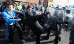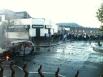 Tre le raffiche di proiettili di gomma sparati su una folla di circa 200 persone, impegnata nel lancio di pietre, molotov, mattoni, razzi.