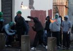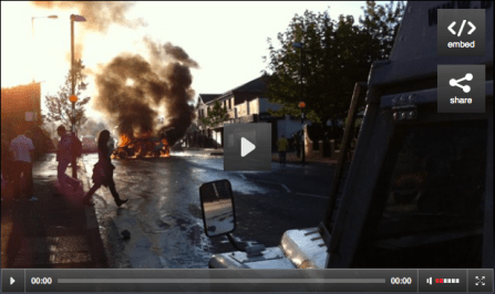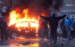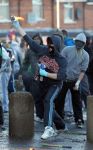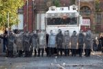 Gravi scontri ad Ardoyne. Rivoltosi con volto coperto e guanti alle mani. La PSNI in difficoltà agisce sparando proiettili di gomma e ricorrendo ai cannoni ad acqua