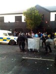 Altro focolaio in Brompton Park, dove la PSNI non è riuscita a mantenere il controllo dei tetti di negozi di Ardoyne. Avvistati uomini con il viso coperto e guanti alle mani. Una molotov ha colpito un cannone ad acqua e un’auto è stata sequestrata e data alle fiamme.