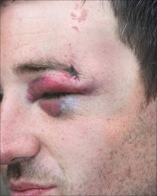 Otto i membri della squadra ricoverati, alcuni dei quali hanno riportato ferite di armi da taglio. Uno di loro, Anthony Braniff (nella foto), ha avuto bisogno di punti ad un occhio, mentre Ciaran Reid si è fratturato una gamba ed un piede. “Avevamo scelto di recarci a Dundalk martedì per evitare gli scontri a Belfast”, racconta. “Sapevamo che c’erano problemi su Crumlin Road, e così l’autista nostro pullman ci ha fatti scendere ad Alliance Avenue. Stavamo camminando a gruppi di due o tre quando un gruppo di trenta o quaranta ragazzi armati di mazze da golf, bottiglie e bastoni ci è corso incontro, e ha buttato a terra un paio di noi. Eravamo in camicia e cravatta, non indossavamo le magliette della squadra, ma ci hanno identificati come Cattolici perché eravamo diretti verso Ardoyne.”
