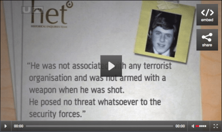 Il responsabile dell’omicidio ha sempre sostenuto che il ragazzo fosse armato, ma l’Het ha stabilito che non aveva con sè la pistola rubata e abbandonata in strada nell’agosto del 1971. L’arma era poi stata raccolta da un membro del gruppo di McKavanagh.