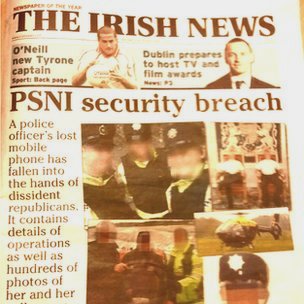 Il cellulare contenente informazioni di spostamenti e fotografie di agenti della PSNI in e fuori servizio, era stata smarrito a West Belfast