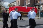 Funerale in stile paramilitare per Seamus “Chang” Coyle, attivista dell’IRSP (Irish Republican Socialist Party) ed ex membro dell’INLA (Irish National Liberation Army) Il “saluto” paramilitare al feretro è avvenuto in Rosemount Gardens, dove quattro uomini con il viso coperto da un passamontagna hanno volto i fucili al cielo sparando 12 colpi. La cerimonia è poi preseguita con la funzione celebrata alla St Mary’s Church, Creggan.