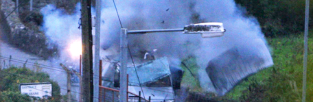 L’esplosione controllata effettuata dagli artificieri sul Citroen Berlingo a Newry, nei pressi del confine
