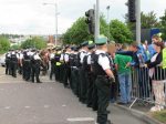 La polizia è intervenuta quando la folla di manifestanti – un centinaio di persone, riportano il Derry Journal e il Belfast Telegraph, metà delle quali bambini – si è incontrata con gli steward, all’altezza del Peace Bridge. Nessun ferito nei brevi scontri con gli agenti, ma un arresto, secondo la PSNI connesso con l’attività dissidente repubblicana, “così come molti manifestanti coinvolti”: questa la giustificazione per l’intervento.