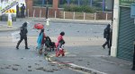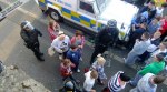 I Repubblicani sono stati tempestati da una pioggia di mattoni, pietre, palline da golf e bottiglie. Numerosi manifestanti, membri del RNU, stewards e bambini sono stati gravemente feriti.