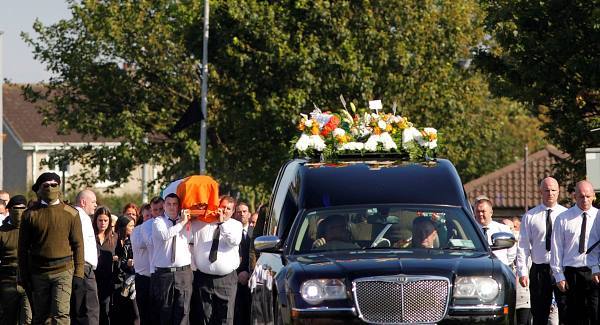 The funeral cortege of Real IRA member Alan Ryan in Donaghmede, north Dublin. PRESS ASSOCIATION Photo. Picture date: Saturday September 8, 2012. His funeral service was held at at the Church of the Holy Trinity. Photo credit should read: Julien Behal/PA Wire