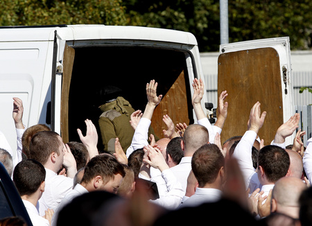 The guard of honour hold their hands up to shield uniformed members of the colour party change in the back of a van at the funeral of Real IRA member Alan Ryan (31) at the Church of the Holy Trinity in Donaghmede, north Dublin, which was attended by a large number of mourners and full colour pary and millitary trappings PRESS ASSOCIATION Photo. Picture date: Saturday September 8, 2012. See PA story to follow . Photo credit should read: Julien Behal/PA Wire. EDITORIAL USE ONLY