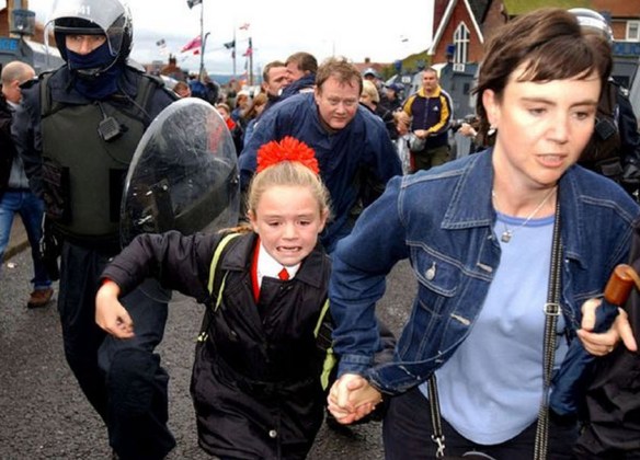 During the Holy Cross dispute of 2001 riot police had to escort schoolgirls and their parents past hate-filled protesters on the journey to the Catholic school through the Protestant Glenbryn estate.