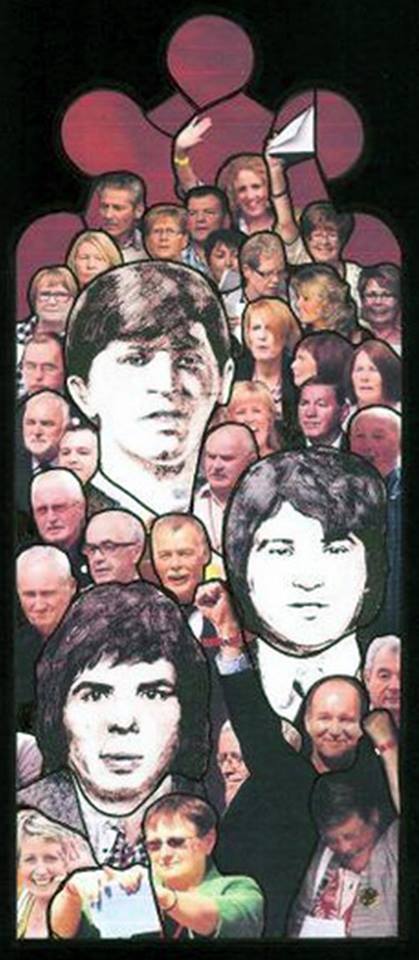 La vetrata n. 4 del Bloody Sunday Memorial, realizzato per la Guildhall. Pomo della discordia tra i familiari delle vittime
