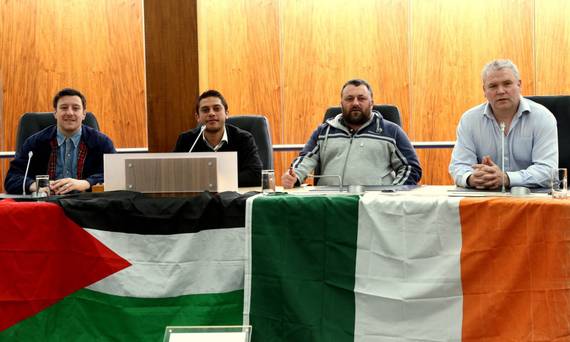 COLERAINE, BANDIERE IRLANDESE E PALESTINESE IN SALA CONSILIARE
