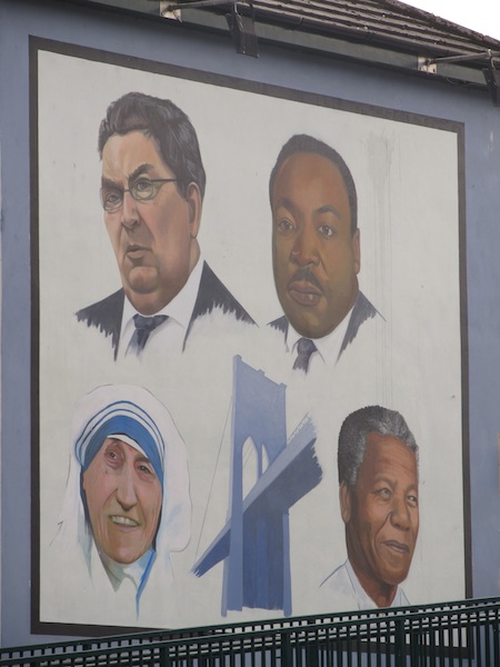 Raffigurazione dei 4 premi nobel per la pace, John Hume, Martin Lluter King Jr., Maria Teresa di Calcutta e Nelson Mandela. John Hume fù uno dei firmatari degli accordi di pace.
