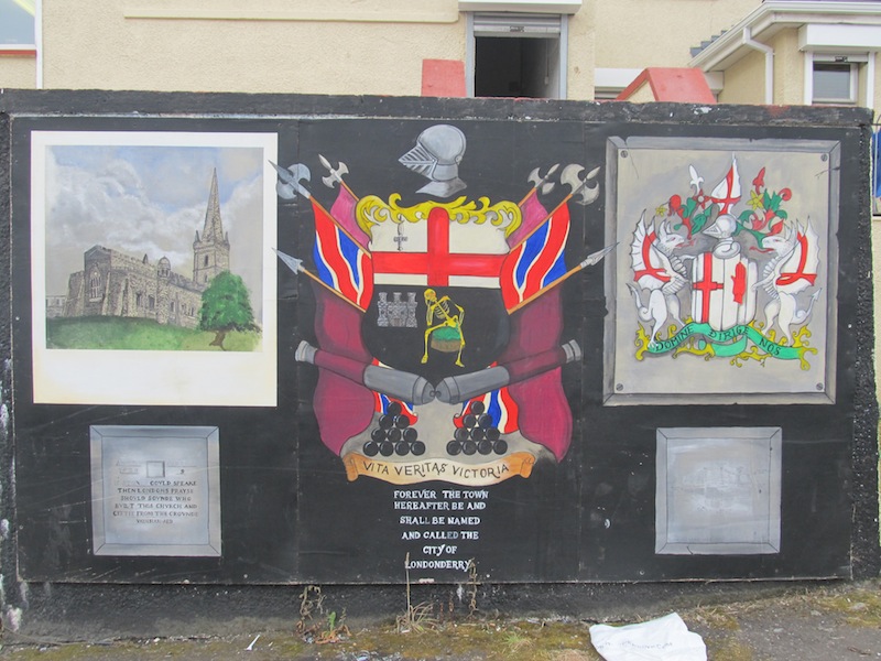 Murales che rivendica quello, che per gli Unionisti e per i Britannici è il nome della città, il nome Londonderry fù dato dall’Honorable Irish Society nel 17° secolo, la stessa istituzione che fù incaricata di colonizzare l’Ulster con immigrati Scozzesi.