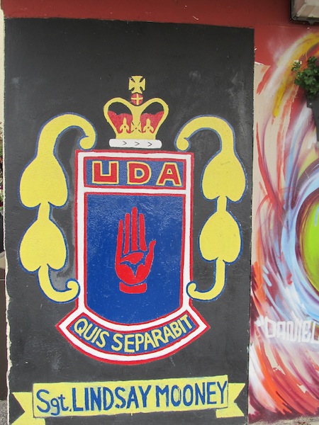 “UDA” Posted on 21 Ago 2013 by S.P. Lascia un commento Derry -“Ulster Defence Association”chi ci potrà separare ? Ulster Defence Association, gruppo paramilitare lealista nato nel 1971. Derry, The Fountain Fai clic per condividere su Facebook (Si apre in una nuova finestra) Facebook Fai clic per condividere su X (Si apre in una nuova finestra) X Fai clic per inviare un link a un amico via e-mail (Si apre in una nuova finestra) E-mail Fai clic qui per stampare (Si apre in una nuova finestra) Stampa Altro Fai clic per condividere su WhatsApp (Si apre in una nuova finestra) WhatsApp Fai clic qui per condividere su LinkedIn (Si apre in una nuova finestra) LinkedIn Fai clic qui per condividere su Reddit (Si apre in una nuova finestra) Reddit Mi piace Caricamento... Precedente Continua Return to SIMBOLOGIA, ARTE E RIVENDICAZIONE CULTURALE: I MURALES