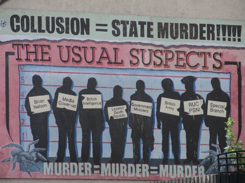 Accuse di collusione tra, gruppi paramilitari lealisti, e servizi segreti britannici,polizia ed esercito, coinvolti nel passaggio, agli stessi gruppi paramilitari, di dettagli personali su civili repubblicani da uccidere.