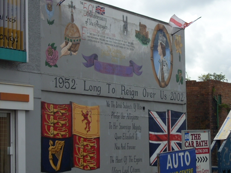 Murales che celebra il 50° anniversario dell’ascesa al trono del sovrano Britannico Elisabetta II.