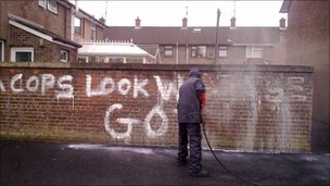 A meno di un mese di distanza da un incendio doloso, l’ufficio elettorale di Alliance Party è stato danneggiato da graffiti di Sara Parmigiani Nuovo atto vandalico all’indirizzo del quartier generale di Alliance Party, il cui leader David Ford ricopre la carica di Ministro della Giustizia. I graffitari sono entrati in azione alle 2.30 della scorsa notte presso la sede