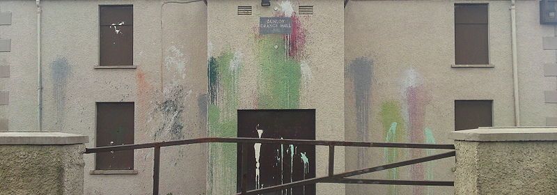 Nuovo attacco all’Orange Hall di Rasharkin ad una settimana dal lancio di una molotov contro di essa L’Orange Hall di Rasharkin continua ad essere bersaglio di attacchi. L’ultimo in sequenza temporale si è concretizzato in graffiti a sfondo settario contenti slogan repubblicani. Un portavoce del Grand Orange Lodge che ha dato l’allarme, chiede ai politici di intervenire per indurre la