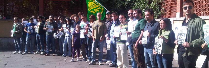 8 ottobre 2011, giornata di mobilitazione europea in sostegno dei prigionieri politici repubblicani irlandesi. Gli attivisti di Francia, Italia, Germania, Paesi Bassi, Austria e Svezia hanno manifestato chiedendo il ripristino dello status di prigioniero politico e l’immediata liberazione di Marian Price e Martin Corey Comunicato del Sinn Féin Poblachtach International Bureau Vienna / Roma / Parigi – Attivisti repubblicani irlandesi