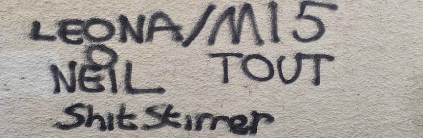 Il National Union of Journalists ha condannato i graffiti ‘vili e pericolosi’ apparsi a Creggan, Derry Leona O’Neill, colonnista del Belfast Telegraph e freelance,  nei giorni scorsi aveva pubblicato sul suo profilo Twitter l’immmagine dei graffiti intimidatori con cui era stato imbrattato un muro a Creggan, area prettamente repubblicana di Derry, città dove risiede la giornalista. “Non sono né un