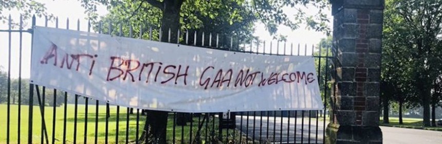 Il Belfast Counicl ha rimosso uno striscione “settario” che descrive il GAA come “anti-britannico” e  “non benvenuto”, affisso all’ingresso di un parco pubblico a nord della città Il messaggio “Anti British GAA Not Welcome” era stato scritto con vernice spray rossa su uno striscione bianco, poi appeso alla cancellata d’ingresso del Grove Park in Jellicoe Avenue, North Belfast. L’area si